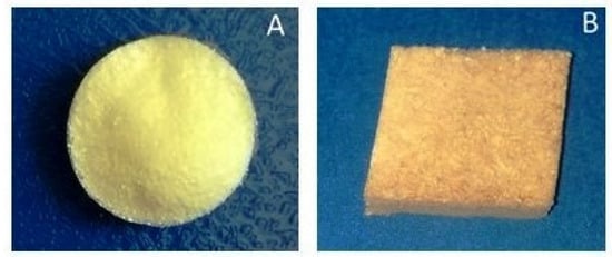 Digital photograph of scaffolds: (A) CCJ and (B) CHER.