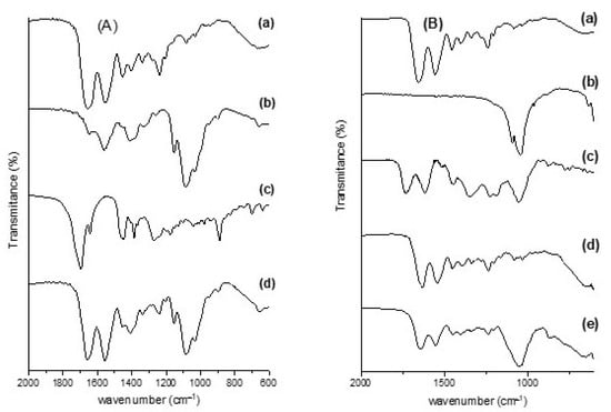 The bands related to chitosan (Figure 3(Ab)) were seen at 1651 cm−1 for deformation C=O (amide I); at 1560 cm−1, corresponding to N–H deformation (amide II); at 1415 cm−1 due the deformation of the C–H bond; and at 1084 cm−1, referring to the C–O stretching characteristic of the saccharide structure [,].