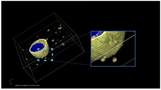 Furthermore, a three-dimensional reconstruction of the MDCK-ABCB1 cells treated with DiI-loaded MVFs was also generated. Cell preparation and microscope settings remained consistent with those previously described. Z-stack images were acquired through the entire depth of the sample, using a Z-range of 33.98 µm and a Z-Step of 0.8 µm. The top was set at 16.99 µm and the bottom was set at −16.99 µm. Nikon NIS Elements Advanced Research software (https://industry.nikon.com/de-de/produkte/industriemikroskopie/industriemikroskope/software/) (Nikon Cooperation Inc., Tokyo, Japan) was used to reconstruct three dimensional images from the Z-stack data.