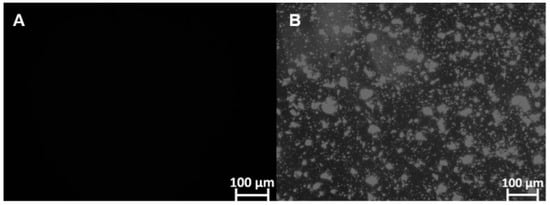 The identification of FEX crystals that are insoluble in SEDDS-FEX and FEX suspensions (undiluted samples) was carried out using polarized light microscopy analysis and the Optical Zeiss® microscope. The analyses were carried out at 100× magnification: (A) SEDDS-Fex and (B) Fex suspension.