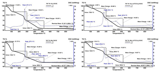 | MCM-48@APTES @MOE | 10.41 | 84.9 | 15.20 | 276.8 | 16.57 | 323.1/432.3 | 32.24 |