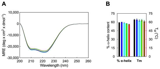 α−helix (%) = [(−MRE208 − 4000)/(33000 − 4000)] × 100.