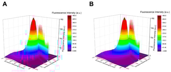 3D fluorescence spectra of HSA in absence (A) and in presence (B) of AD nanomicelles (10 µM).