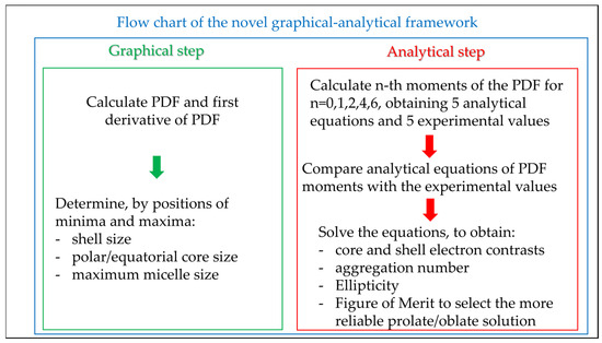 Flow chart of the proposed new method for determining the structural parameters of core-shell spheroidal micelles.