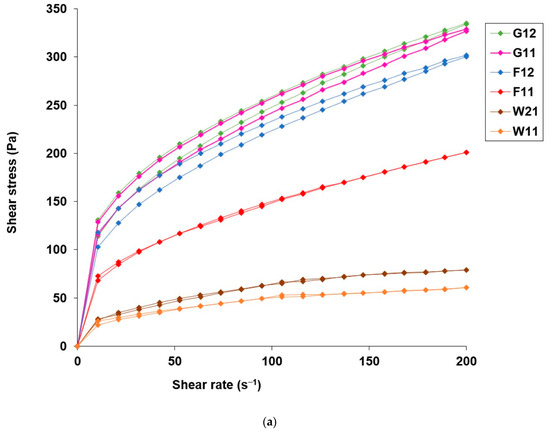 | Sample | ηmax (Pa∙s) | ηmin (Pa∙s) | H (Pa/s) | ηmax (Pa∙s) | ηmin(Pa∙s) | H (Pa/s) | ηmax (Pa∙s) | ηmin (Pa∙s) | H (Pa/s) |