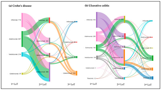 - Brady, J.E.; Stott-Miller, M.; Mu, G.; Perera, S. Treatment Patterns and Sequencing in Patients with Inflammatory Bowel Disease. Clin. Ther. 2018, 40, 1509–1521.e5. [Google Scholar] [CrossRef] [PubMed]