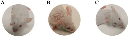 Macroscopic appearance of the ear’s aspect: (A) negative control group (control condition); (B) positive control group (redness and edema); (C) PRA-NLC treatment group.
