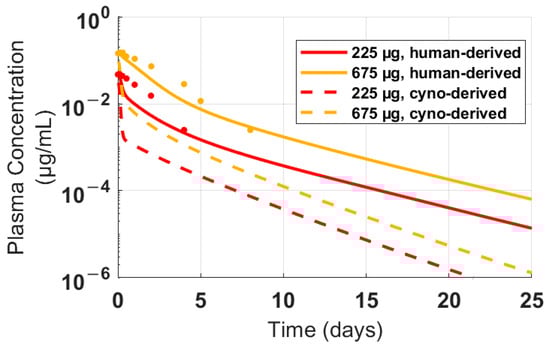 - Simulations using the fitted model parameters were validated against a second cynomolgus monkey PK dataset (1 and 3 mg/kg; preclinical study 2).
