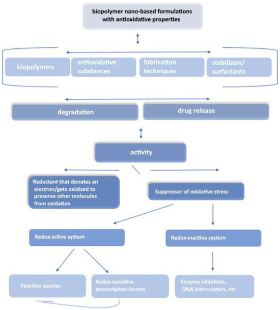 Scheme representing the purpose behind biopolymer nano-based drug delivery systems with antioxidative properties.