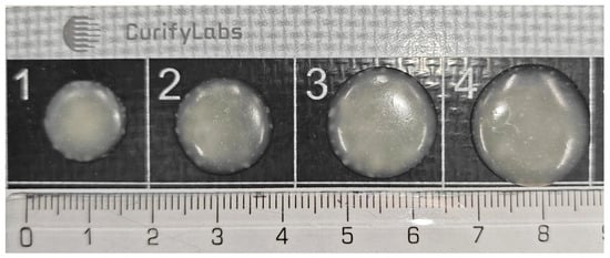 For blister packaging, 3/16″ Mini Medi-Cap® Plus™ Blisters (MD425, MediDose Group, Ivyland, PA, USA) were chosen. The blister lids employed were LaserLabel™ “25” Lid-Label® Cover Sheets from MediDose.com. Cartridges used in the dosing process in Phases 1 and 2 were supplied by Natural Machines, Barcelona, Spain. For Phases 3 and 4, sterilized single-use PVC syringes, 100 mL, equipped with a Luer-lock mechanism, were procured from Yangzhou Bessent Textile Trading Co., Ltd., Shanghai, China. A silicon mat was sourced from Fengyang Jiasong New Material Technology Co., Ltd., Chuzhou, China.