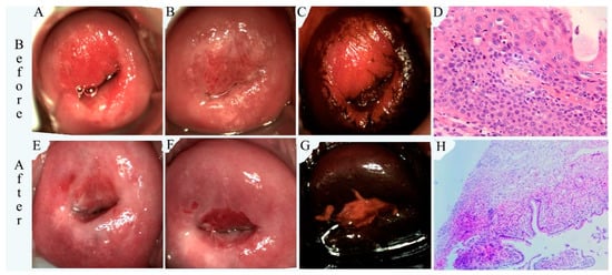 - Lang, L.; Jia, Y.; Duan, Z.; Wu, J.; Luo, M.; Tian, P. The role of endocervical curettage in detection and treatment of cervical canal lesions. Histol. Histopathol. 2022, 37, 63–68. [Google Scholar] [PubMed]