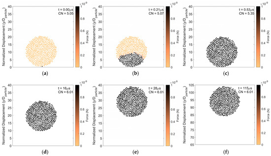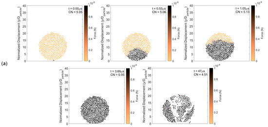 Experimental studies have been conducted to investigate the impact process [7,8,9]. However, it is experimentally difficult to obtain accurate information during the impact process due to the short impact duration and (often) small particle size. Hence, experimental investigations are mostly restricted to post-impact particle analysis [10,11], although ultrahigh-speed cameras and pulsed lasers have been more recently used [12,13].