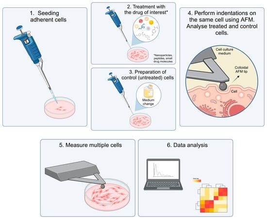 This review identifies what a researcher will need to enter the field and lays out the research area’s present and future. For this, relevant studies are included, even if they are not nominally performed in the field of pharmacy, as well as more advanced techniques, particularly cell rheology. Due to the versatility and availability of AFM, focus is exclusively given to AFM-based techniques.