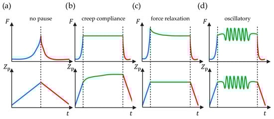 - Flormann, D.A.D.; Anton, C.; Pohland, M.O.; Bautz, Y.; Kaub, K.; Terriac, E.; Schäffer, T.E.; Rheinlaender, J.; Janshoff, A.; Ott, A.; et al. Oscillatory Microrheology, Creep Compliance and Stress Relaxation of Biological Cells Reveal Strong Correlations as Probed by Atomic Force Microscopy. Front. Phys. 2021, 9, 711860. [Google Scholar] [CrossRef]