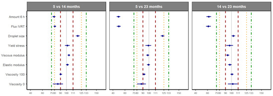 | INTERVAL | η0 | η100 | G′ | G″ | σ0 | Droplet Size | IVRT Flux | A6h | ||