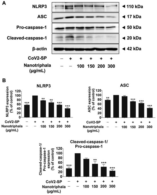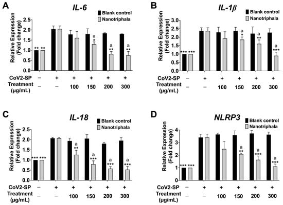 Chittasupho, C.; Umsumarng, S.; Srisawad, K.; Arjsri, P.; Phongpradist, R.; Samee, W.; Tingya, W.; Ampasavate, C.; Dejkriengkraikul, P. Inhibition of SARS-CoV-2-Induced NLRP3 Inflammasome-Mediated Lung Cell Inflammation by Triphala-Loaded Nanoparticle Targeting Spike Glycoprotein S1. Pharmaceutics 2024, 16, 751. https://doi.org/10.3390/pharmaceutics16060751