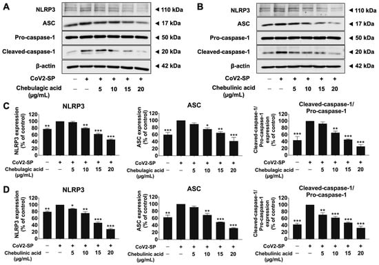 3.10. Inhibitory Effects of Nanotriphala and Its Bioactive Compounds on NLRP3 Inflammasome Pathway in CoV2-SP-Induced A549 Cells