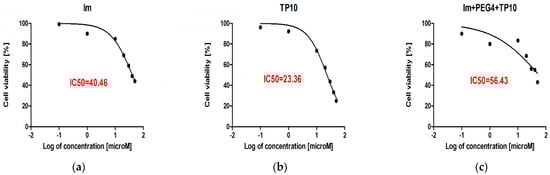 The IC50 values of (a) Im; (b) TP10; and (c) Im+PEG4+TP10, calculated by the non-linear four-parametric method.