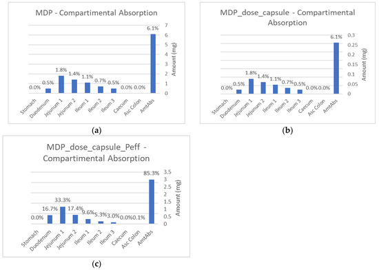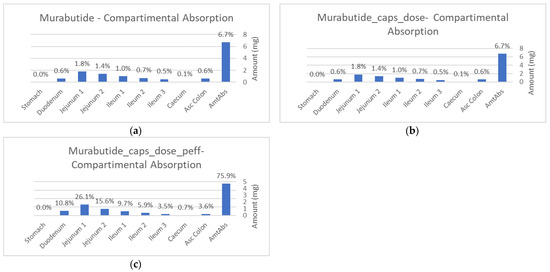 Figure 9a–c represent the absorption chart bar for murabutide. It can be seen that after improving Peff (Figure 9c), the absorption increased significantly.