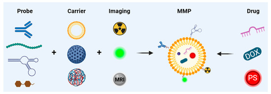 | MMPs | Targeting Group | Carriers | Imaging Group | Drug | Application | Cancer Type | Mouse Strain | Refs |