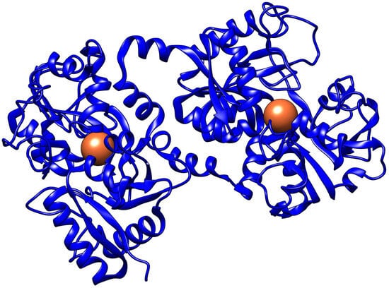 - Pettersen, E.F.; Goddard, T.D.; Huang, C.C.; Couch, G.S.; Greenblatt, D.M.; Meng, E.C.; Ferrin, T.E. UCSF Chimera--a Visualization System for Exploratory Research and Analysis. J. Comput. Chem. 2004, 25, 1605–1612. [Google Scholar] [CrossRef] [PubMed]