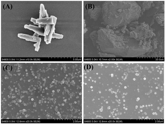 At present, the established key techniques for CNFs preparation can be mainly categorized into bottom-up technologies by controlling the precipitation process, and top-down technologies, which involve the employment of a high force to reduce particle size through grinding and high-pressure homogenization [13,14,15]. Despite the successful application of top-down technologies to commercial CNFs, there is a heightened risk of product contamination and degradation during the protracted processing stage [16,17]. More importantly, the poor efficiency of particle size reduction in the preparation of CNFs with a particle size <150 nm hampers the widespread development of top-down technologies [13]. Concurrently, the strict demands on nucleation and growth kinetics during the precipitation process, e.g., the nucleation rate of particles must surpass the growth rate at a uniform supersaturation level, also greatly increase the difficulty in achieving the controlled preparation of CNFs using bottom-up technologies [18]. For these reasons, most studies on CNFs focus on the efficient reduction in API particle size via prescription screening and the development of preparation technology but pay less attention to the comprehensive role of the formulation in in vivo performance [19,20]. Furthermore, nanoparticles assembled using different components have been demonstrated to have outstanding advantages as drug delivery systems in inhibiting system metabolization, avoiding multidrug resistance, and achieving synergistic therapy [21,22,23,24]. Therefore, the realization of the controlled preparation of a CNF containing multiple drug components could represent a promising direction for the oral administration of insoluble drugs.