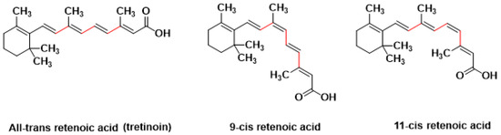 - Zasada, M.; Budzisz, E. Retinoids: Active molecules influencing skin structure formation in cosmetic and dermatological treatments. Adv. Dermatol. Allergol. 2019, 36, 392–397. [Google Scholar] [CrossRef] [PubMed]