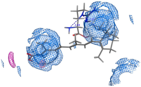 Predicted potential interactions between retinoic acid and arginine, showing an electrostatic map of retinoic acid’s surface, highlighting major areas of interaction.