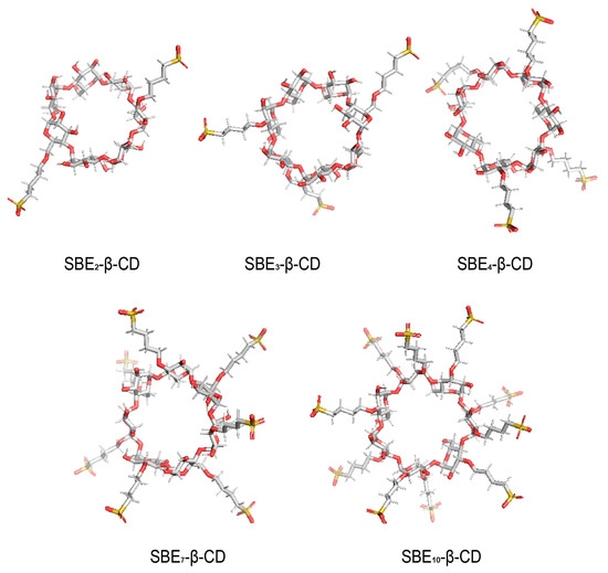 The structure of SBE-β-CD (DS = 2, 3, 4, 7, 10).