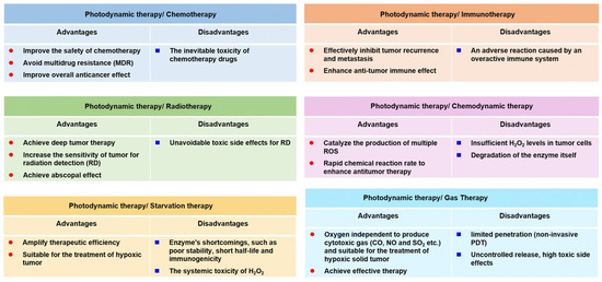 Advantages and disadvantages of synergistic therapies containing PDT [134]. Reproduced with permission from the Royal Society of Chemistry.