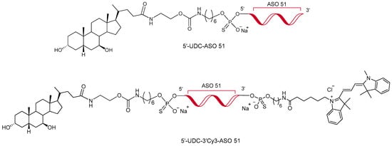 Chemical structure of 5′-UDC-ASO 51 [25] and 5′-UDC-3′Cy3-ASO 51.