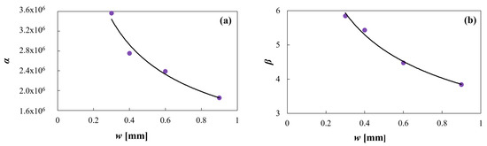 The final expression obtained of the modified equation of the Weibull model as a function of time and w is (Equation (7)), as follows: