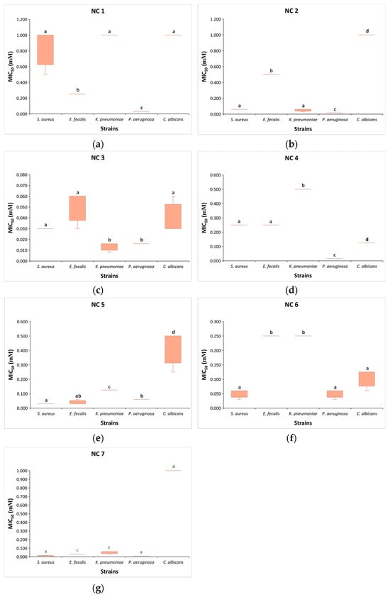3.2. Minimum Inhibitory Concentrations of NC 1–7