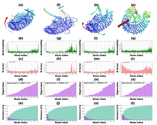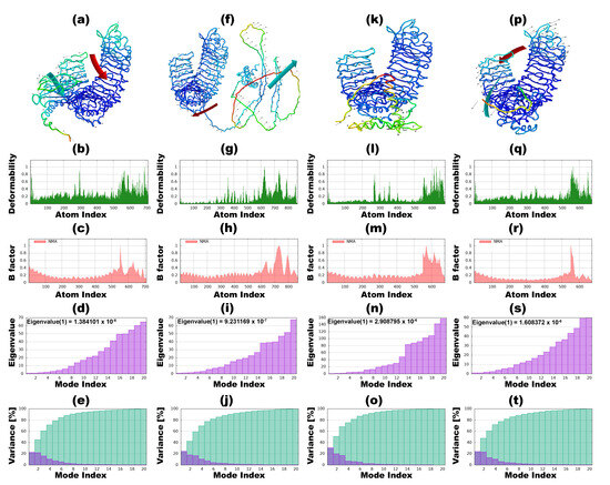 - López-Blanco, J.R.; Aliaga, J.I.; Quintana-Ortí, E.S.; Chacón, P. IMODS: Internal Coordinates Normal Mode Analysis Server. Nucleic Acids Res. 2014, 42, W271–W276. [Google Scholar] [CrossRef] [PubMed]