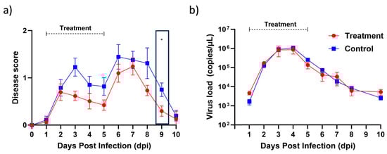 Mice were inoculated subcutaneously with 1 × 106 plaque-forming units (PFU) of CHIKV isolate diluted in 30 µL of PBS in the ventral side of the right footpad toward the ankle. Blood viral RNA load and joint-footpad swelling of the infected animals were monitored daily, as described previously [40,41,42,43]. Berberine proniosome gel (10 mg/mL) was applied thinly on the virus-inoculated joint-footpad starting from 1 day post-infection (1 dpi). Joint-footpad swelling is presented as the disease score reflecting the changes in footpad size post-CHIKV infection relative to baseline (non-infected). Blood viral RNA load was derived from 10 µL of tail blood diluted in 190 µL of PBS-citrate solution and extracted using the PrimeWay Viral RNA/DNA Extraction Kit (1st BASE). Viral RNA load was determined through the detection of the virus negative-strand nsP1 RNA [44]. qRT-PCR was performed using the Luna Universal Probe One-Step RT-qPCR Kit (New England Biolabs, Ipswich, MA, USA). The primers and probe sequences as well as thermal cycler conditions used have been previously reported [43]. Absolute viral RNA quantity was estimated from a standard curve generated using serial dilutions of synthetic CHIKV negative-strand nsP1 RNA transcripts, as reported [45]. Plasma was collected from sedated animals via orbital bleeding in Minicollect® K3EDTA tubes (Greiner, Kremsmünster, Austria) at selected timepoints. Mice were sedated through inhalation of 1–3% isoflurane.
