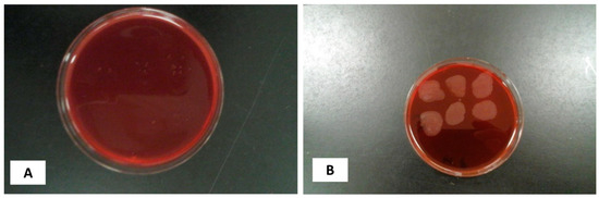 To reconstitute, 0.5 mL of brain heart infusion (BHI) broth supplemented with 5% fetal calf serum was added to the ampule, followed by careful dissolution of the contents without producing any aerosol. The broth was maintained for 10 min to allow bacteria to rehydrate. They were then subcultured on blood and chocolate agar plates to obtain colonies on solid agar plates supplemented with DENT (vancomycin, trimethoprim, cefsoludin, and amphotericin B). For broth culture, fresh BHI broth containing 5% calf serum and DENT was inoculated with the reconstituted strain. All plates (Figure 1) and tubes were incubated in a 2.5 L Oxoid anaerobic jar with a CampyGen gas pack at 35 °C for 7 days.