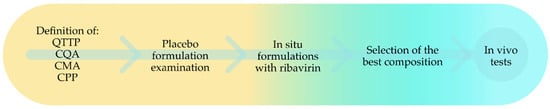 This study employed a QbD methodology to design the experiments. According to this concept, the initial step was to define the quality target product profile (QTPP) of the in situ system being developed for intranasal delivery of ribavirin (Table 1).
