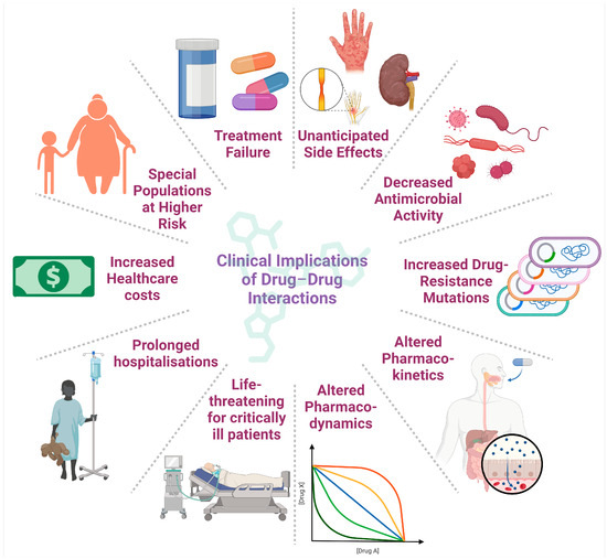 Drug–drug interactions (DDIs) occur when the effects of one drug are altered due to the simultaneous administration of other medications. In addition to potential DDIs, which may occur prior to administration, DDIs may be pharmacokinetic or pharmacodynamic [4].