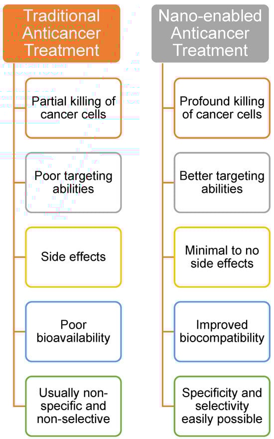 Advantages of nano-enabled anticancer treatment over traditional methods.