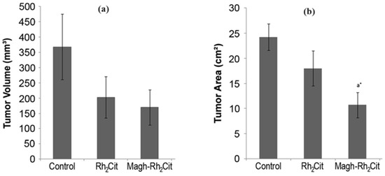 - Peixoto, R.C.A.; Miranda-Vilela, A.L.; Filho, J.d.S.; Carneiro, M.L.B.; Oliveira, R.G.S.; da Silva, M.O.; de Souza, A.R.; Báo, S.N. Antitumor Effect of Free Rhodium (II) Citrate and Rhodium (II) Citrate-Loaded Maghemite Nanoparticles on Mice Bearing Breast Cancer: A Systemic Toxicity Assay. Tumor Biol. 2015, 36, 3325–3336. [Google Scholar] [CrossRef]