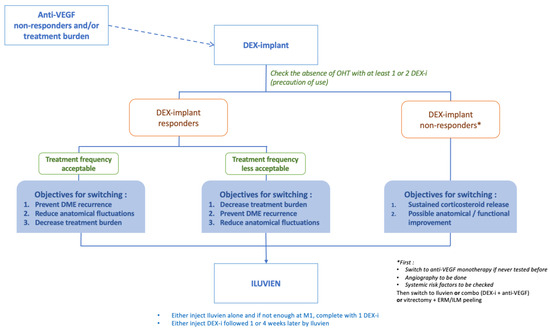 55. Rousseau, N.; Lebreton, O.; Masse, H.; Maucourant, Y.; Pipelart, V.; Clement, M.; Le Lez, M.-L.; Khanna, R.K.; Pepin, M.; Eude, Y.; et al. Fluocinolone Acetonide Implant Injected 1 Month after Dexamethasone Implant for Diabetic Macular Oedema: The ILUVI1MOIS Study. Ophthalmol. Ther. 2023, 12, 2781–2792. [Google Scholar] [CrossRef]