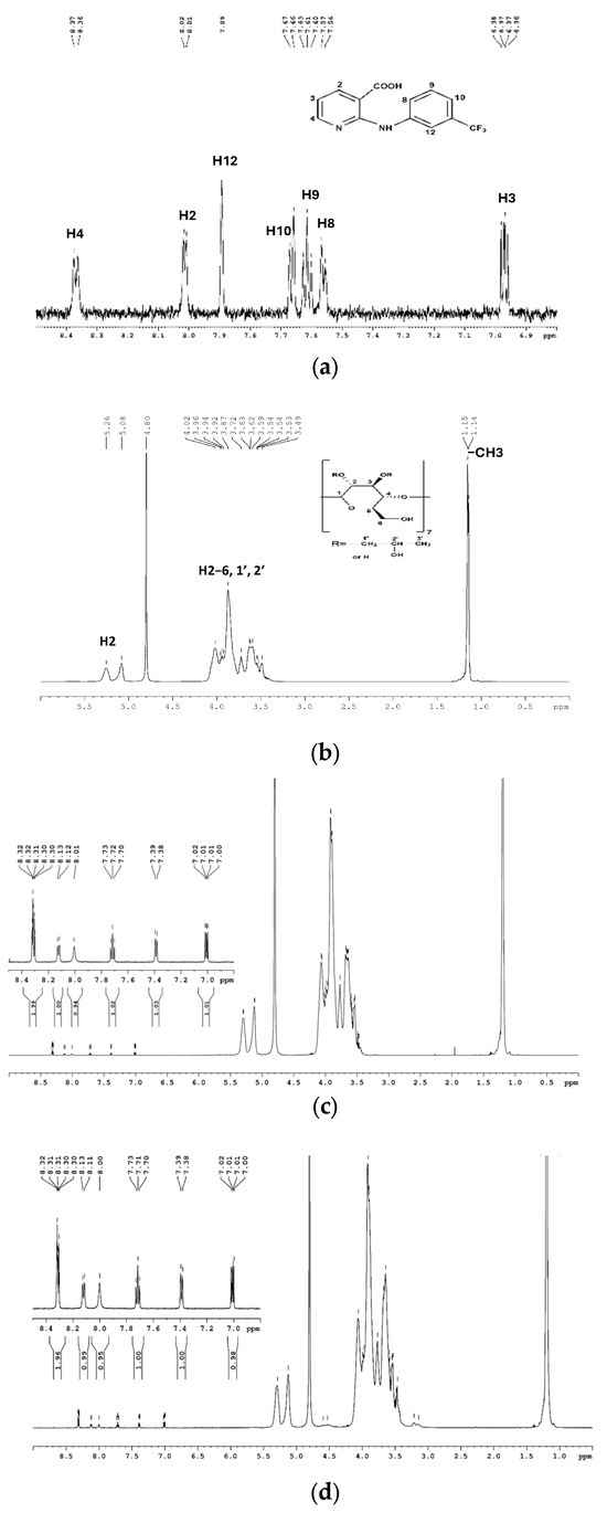 - Bogdan, M.; Caira, M.R.; Farcas, S.I. Inclusion of the niflumic acid anion in β-cyclodextrin: A solution NMR and X-ray structural investigation. Supramol. Chem. 2002, 14, 427–436. [Google Scholar] [CrossRef]
