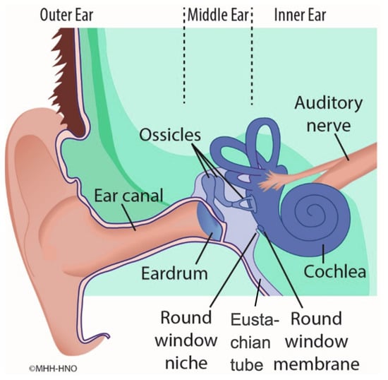 - Salt, A.N.; Hirose, K. Communication pathways to and from the inner ear and their contributions to drug delivery. Hear. Res. 2018, 362, 25–37. [Google Scholar] [CrossRef]