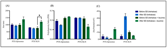 | PTX-liposome | trehalose | 79.50 | 94.26 ± 2.97 | 98.91 ± 0.00 | 1.85 ± 0.01 |