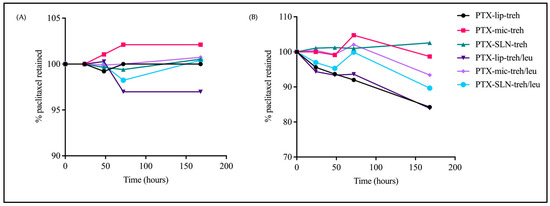 | PTX-SLN | Trehalose/L-leucine | cloudy solution | 65.85 | 0.64 |