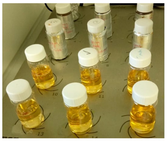 UV-Visible absorption spectroscopy was employed for optical characterization of the colloidal suspensions. The analysis was conducted using a UV/Vis spectrophotometer (Jasco V-530 Jasco Corporation, Tokyo, Japan). Ethanol served as the reference for obtaining UV-Vis spectra. The colloidal stability of AgNPs over time was evaluated by visual observation and UV-Vis spectroscopy [].