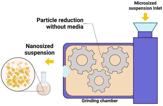 56]. In the top-down wet media milling technique, highly cross-linked polystyrene beads are commonly used as the milling media to minimize cracks and abrasions. For example, the commercial technology NanoCrystal