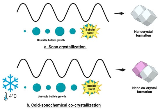 142]. NS formulated using the antisolvent precipitation method exhibited resveratrol and quercetin NPs measuring approximately 210 nm and 110 nm, respectively. The dissolution rate of the drug NPs increased by 6–8-fold and exhibited long-term stability. Silymarin, which has limited water solubility and oral bioavailability, was formulated into lyophilized NS tablets using a sonoprecipitation technique accompanied by freeze-drying [