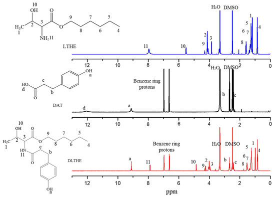 1H-NMR spectra of LTHE, DAT, and DLTHE.