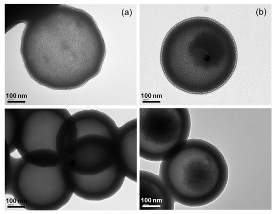 TEM images of (a) blank LTPU NPs and (b) CLNPs.